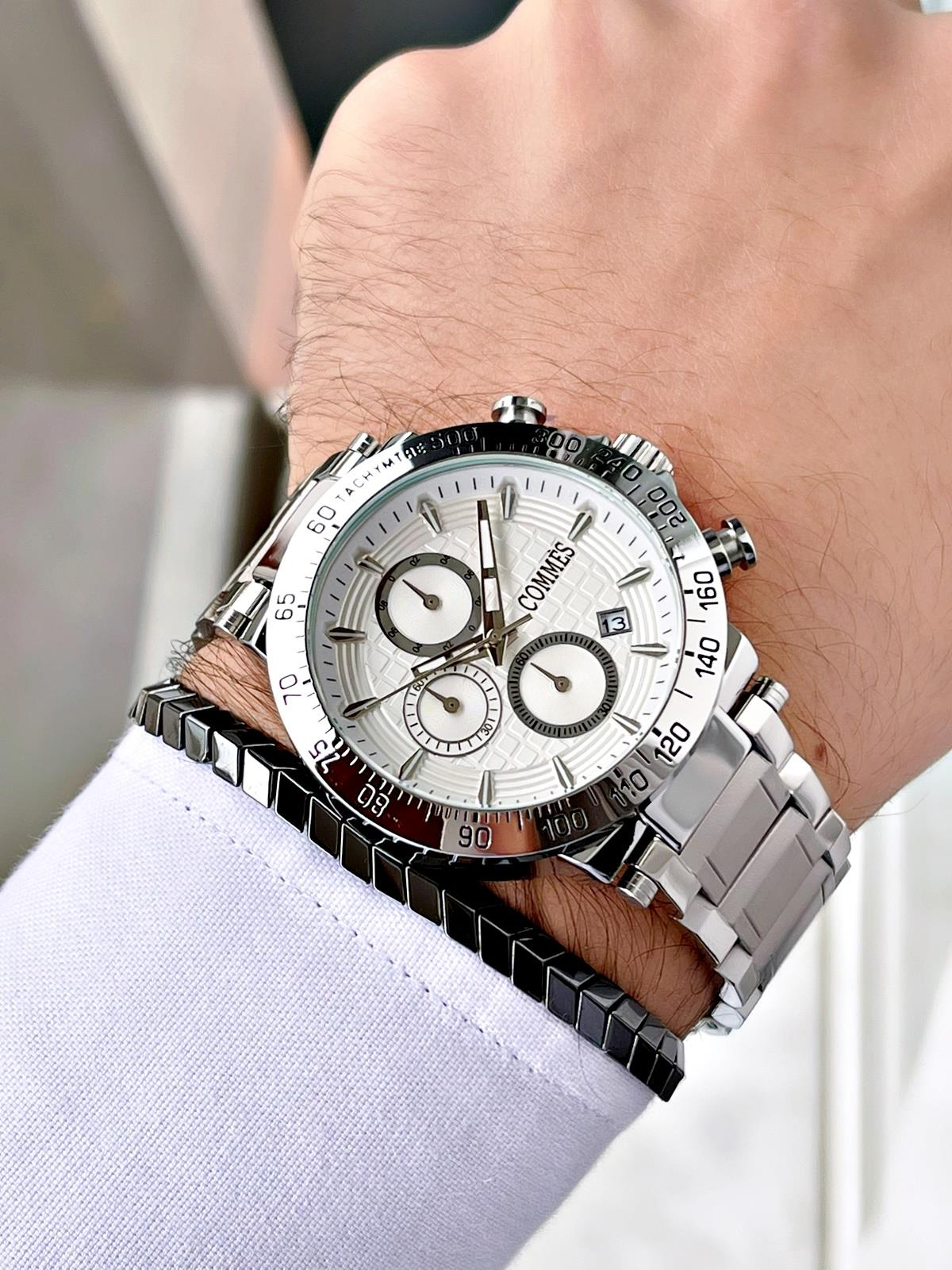 Commes Çelik Kordon Kronometre ve Takvimli Gümüş Renk Unisex Klasik Kol Saati CM1904-SSS